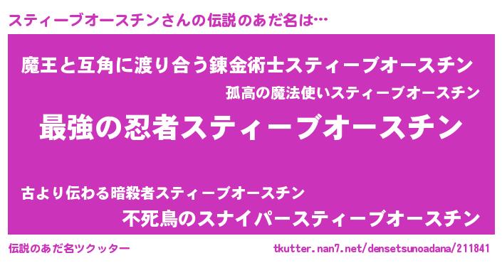 | 女子向けラノベタイトル風あだ名 | 『スティーブオースチンの婚約者』 |