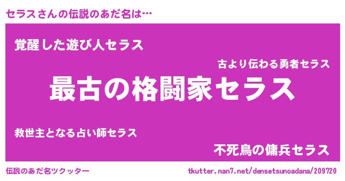 | ヒーロー風カッコイイあだ名 | 『ウルトラセラスマン』『究極戦士セラス』 |