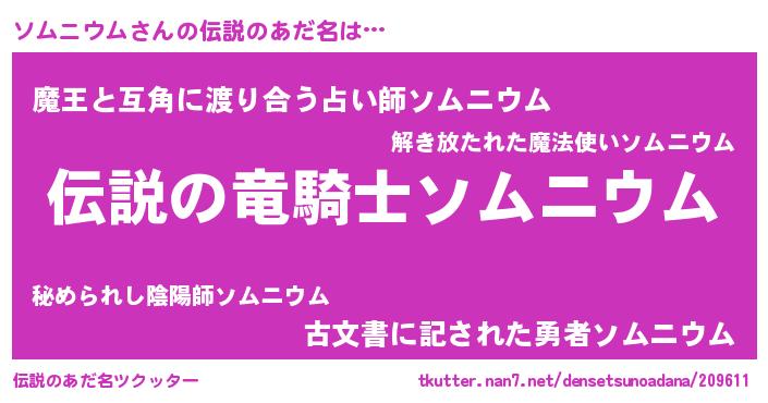 | 意味不明あだ名 | 『住所不定無職ソムニウム(8歳)』 |