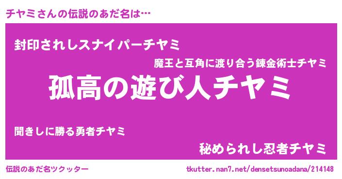 | ヘコむあだ名 | 『チヤっちょ』『チヤっふぃ~』 |