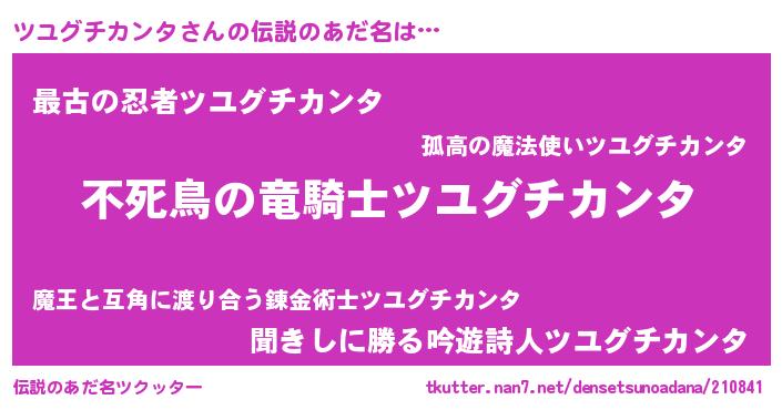 | 女子向けラノベタイトル風あだ名 | 『ツユグチカンタ姫と円卓の騎士』 |