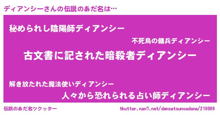 | 女子向けラノベタイトル風あだ名 | 『ディアンシーの玉の輿計画!』 |