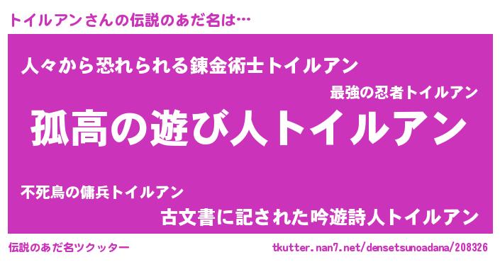 | 意味不明あだ名 | 『とにかく怪しいトイルアン』 |