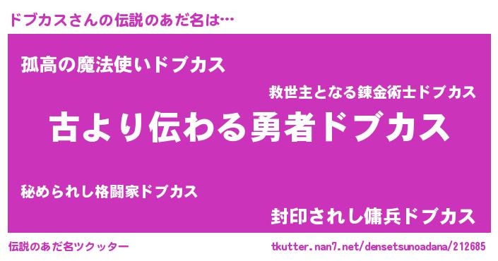 | ヒーロー風カッコイイあだ名 | 『ネオドブカス』『暗黒騎士ドブ』 |