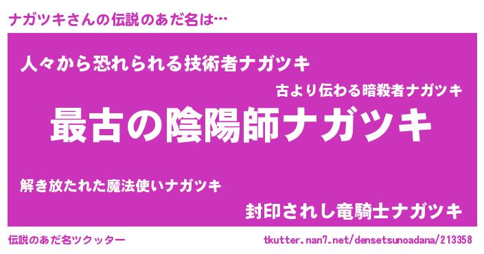 | ヒーロー風カッコイイあだ名 | 『仮面ナガダー』『ウルトラナガツキマン』 |