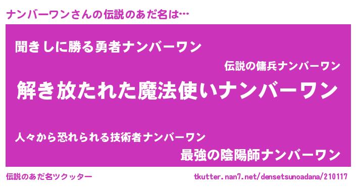 | 胡散臭い通販商品みたいなあだ名 | 『伝統あるサプリメント…その名も「ナンバーワン」』 |