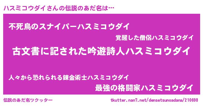 | 意味不明あだ名 | 『永久保存ハスミコウダイ』 |