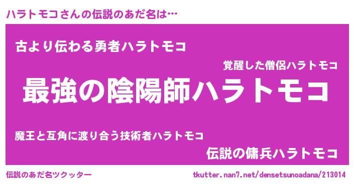 | ファンタジー風あだ名 | 『エターナルハラトモコー』『ゼハラトゥ』 |