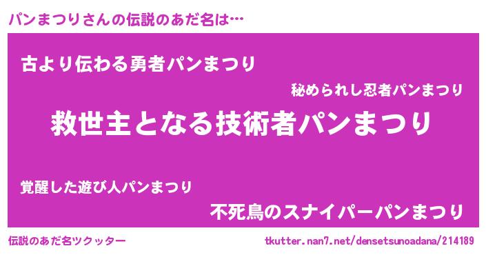 | ヒーロー風カッコイイあだ名 | 『天空の使者パンまつり』『仮面パンダー』 |
