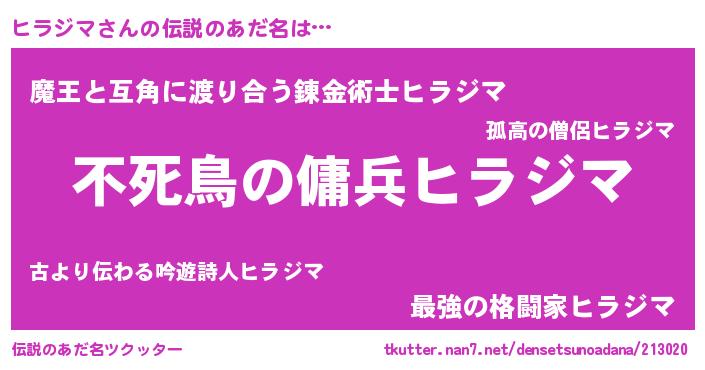 | ヒーロー風カッコイイあだ名 | 『仮面ヒラダー』『スーパーヒラジマ』 |