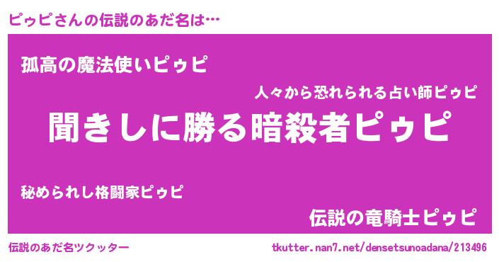 | ヒーロー風カッコイイあだ名 | 『ネオピゥピ』『暗黒騎士ピゥ』 |