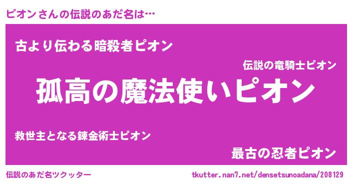 | 胡散臭い通販商品みたいなあだ名 | 『信頼と実績のサプリメント…その名も「ピオン」』 |