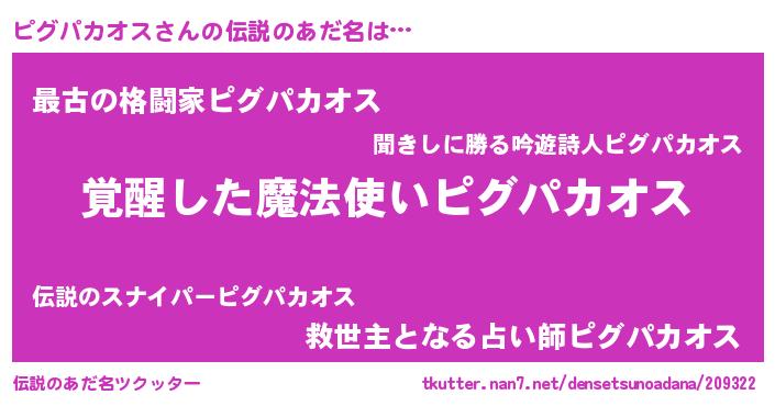 | 胡散臭い通販商品みたいなあだ名 | 『全米が絶賛したサプリメント…その名も「ピグパカオス」』 |