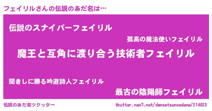 | 女子向けラノベタイトル風あだ名 | 『フェイリル恋絵巻』 |
