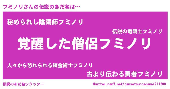 | 意味不明あだ名 | 『とにかく怪しいフミノリ』 |