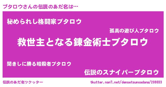 | 男性向けラノベタイトル風あだ名 | 『この素晴らしい世界にブタロウを!』 |