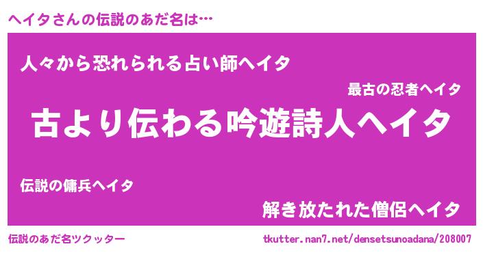 | ヒーロー風カッコイイあだ名 | 『ネオヘイタ』『友情の使者ヘイタ』 |