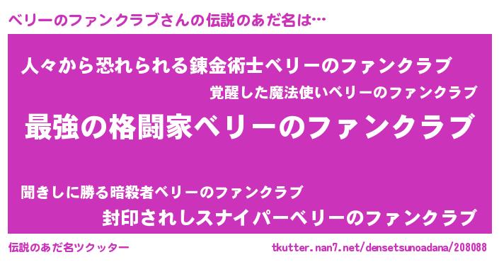 | ファンタジー風あだ名 | 『エターナルベリーノファンクラブー』 |