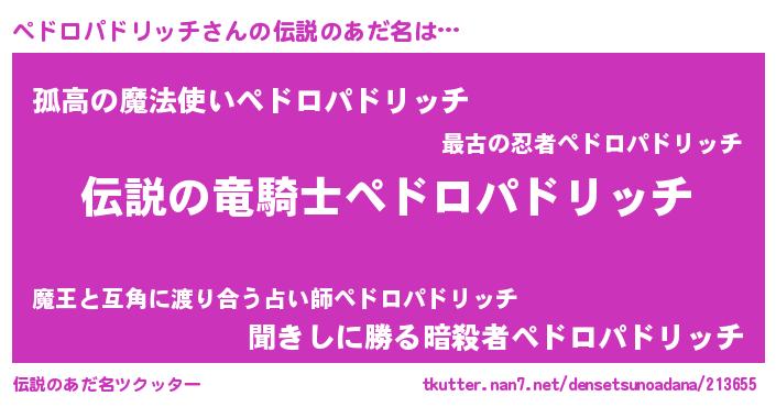 | 男性向けラノベタイトル風あだ名 | 『ペドロパドリッチの憂鬱』 |