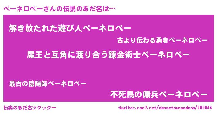 | 女子向けラノベタイトル風あだ名 | 『ペーネロペー恋絵巻』 |