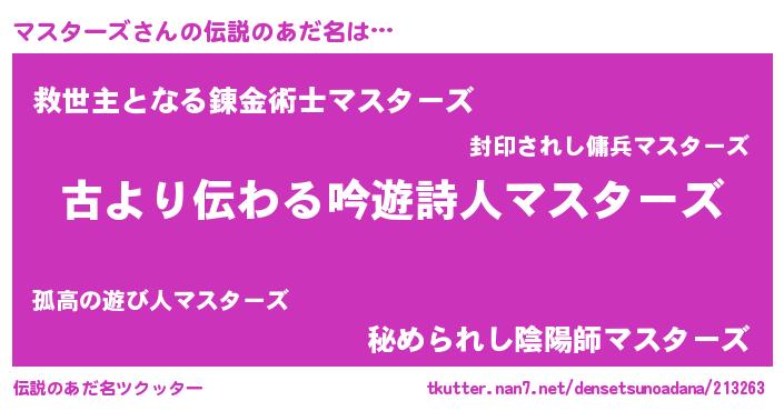 | ヘコむあだ名 | 『マスターズ(笑)』『酢こんぶ』 |