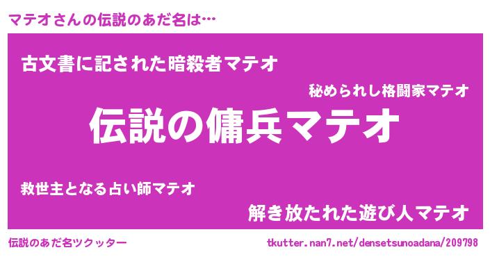| ヒーロー風カッコイイあだ名 | 『仮面マテダー』『スーパーマテオ』 |