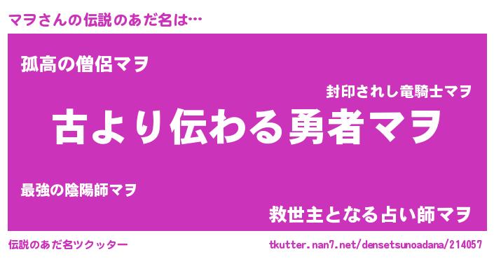 | 男性向けラノベタイトル風あだ名 | 『この素晴らしい世界にマヲを!』 |