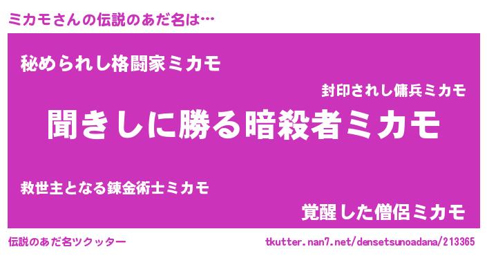 | 意味不明あだ名 | 『自称ミカモ』『永久保存ミカモ』 |