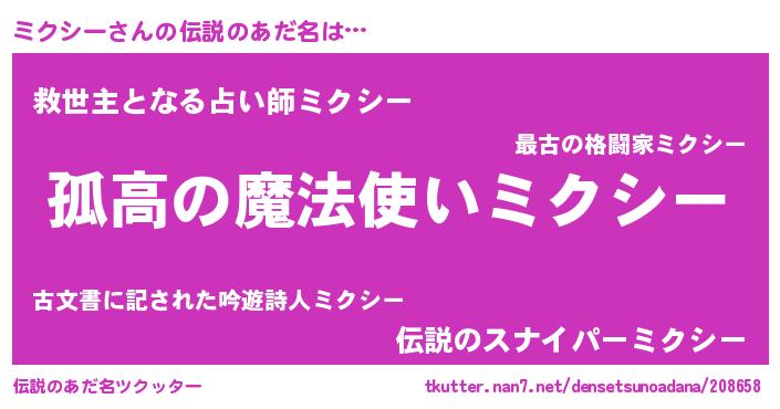 | 胡散臭い通販商品みたいなあだ名 | 『信頼と実績のサプリメント…その名も「ミクシー」』 |