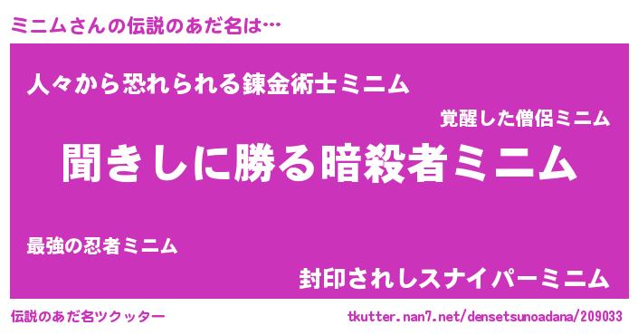 | ヒーロー風カッコイイあだ名 | 『ネオミニム』『ウルトラ戦士ミニム』 |