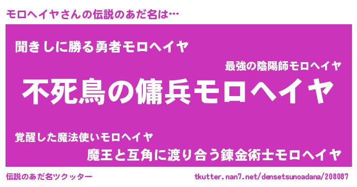 | 胡散臭い通販商品みたいなあだ名 | 『モテモテ間違いなし水晶球…その名も「モロヘイヤ」』 |