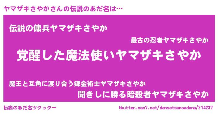 | 男性向けラノベタイトル風あだ名 | 『ヤマザキさやかの嫁は女の子じゃないと思った?』 |