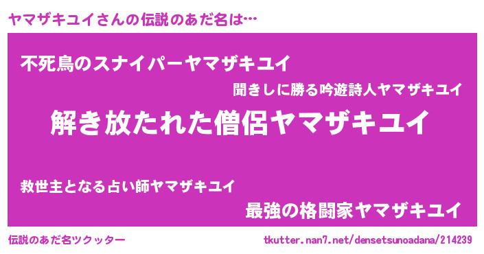 | ポケモン風あだ名 | 『ヒヤマザキユイ』『ヤマチュウ』 |