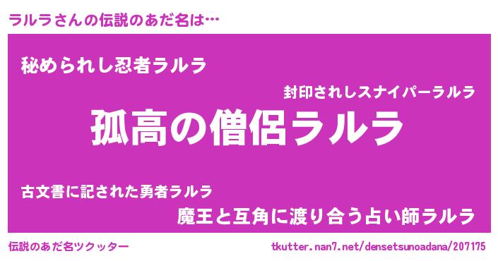 ヒーロー風カッコイイあだ名 | 『魔戒騎士ラル』『ウルトララルラマン』 |