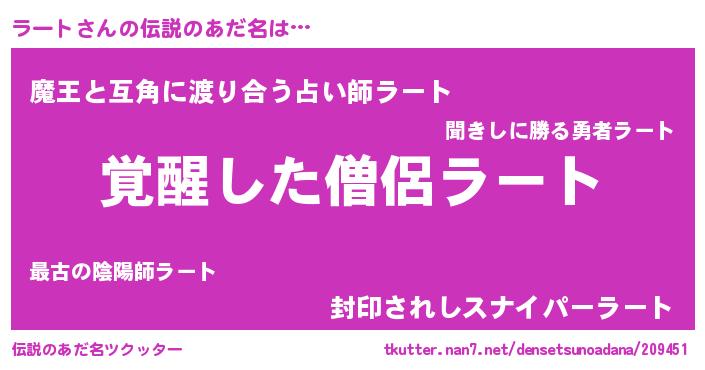 | ヒーロー風カッコイイあだ名 | 『天弓騎士ラー』『慈愛の使者ラート』 |