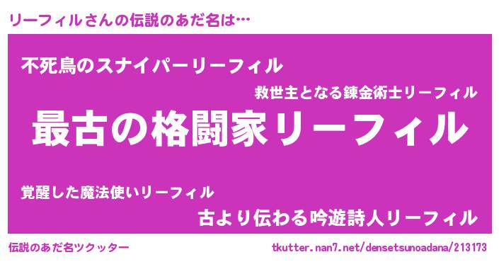 | 意味不明あだ名 | 『リーフィルフォーエバー』 |