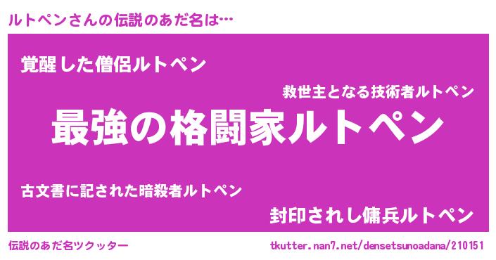 | ヒーロー風カッコイイあだ名 | 『仮面ルトダー』『究極戦士ルトペン』 |