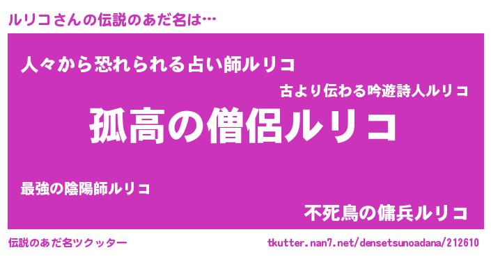 | ヒーロー風カッコイイあだ名 | 『仮面ルリダー』『究極戦士ルリコ』 |