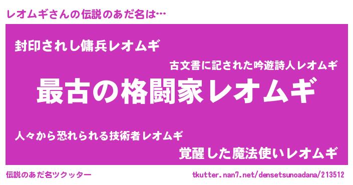 | ポケモン風あだ名 | 『レオムダネ』『レオゴンZ』 |