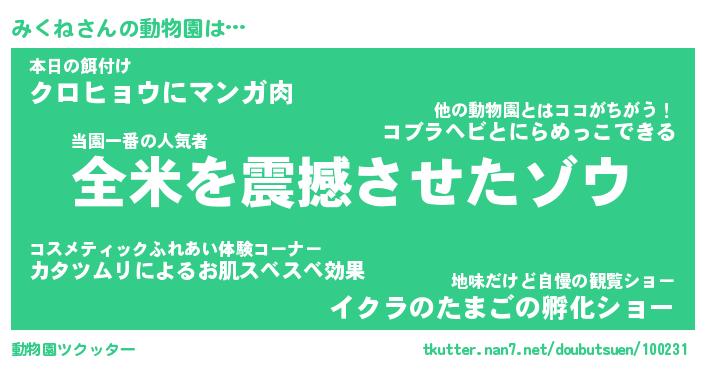 | 2回繰り返すあだ名 | 『みくみく』『みみくく』『ねばねば』 |