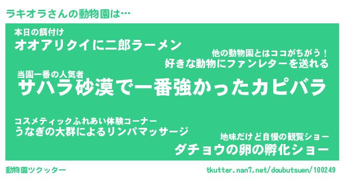 | 2回繰り返すあだ名 | 『ラキラキ』『ララキキ』『ぬぷぬぷ』 |