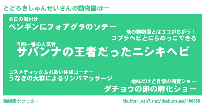 | 2回繰り返すあだ名 | 『とどとど』『ととどど』『いじいじ』 |
