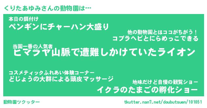| 肩書あだ名 | 『くりたあゆみ社長』『くりたあゆみ団長』 |