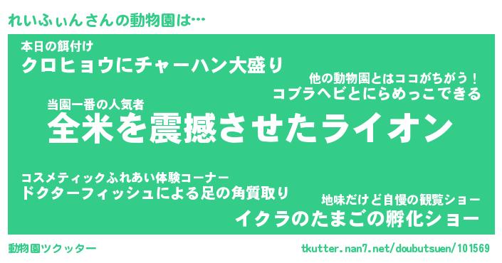 | ツイッター | れいふぃんさんのツイッターID『namakemono_man』 |