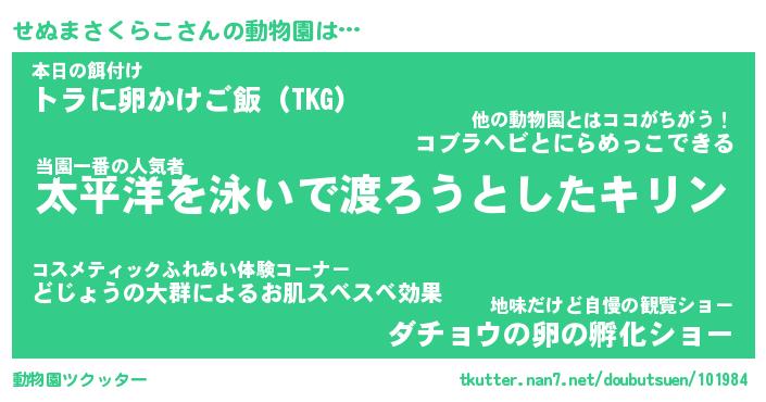 | 料理風あだ名 | 『ネギたっぷりせぬまさくらこの南蛮漬け』 |