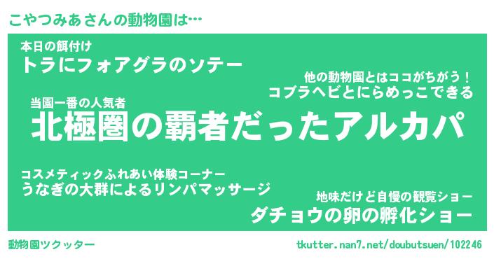 | 2回繰り返すあだ名 | 『こやこや』『ここやや』『うろうろ』 |