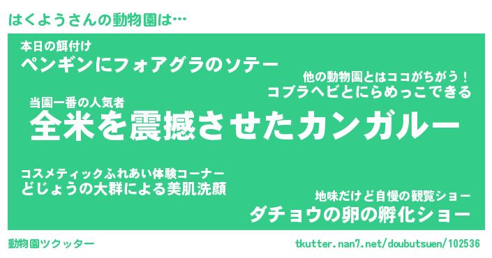 | 2回繰り返すあだ名 | 『はくはく』『ははくく』『いじいじ』 |