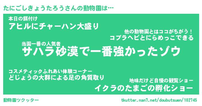 | 2回繰り返すあだ名 | 『たにたに』『たたにに』『うろうろ』 |