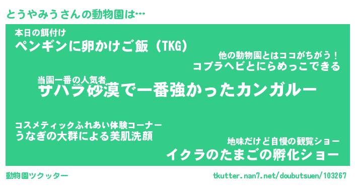 | 胡散臭い通販商品みたいなあだ名 | 『必ず成功するブレスレット…その名も「とうやみう」』 |