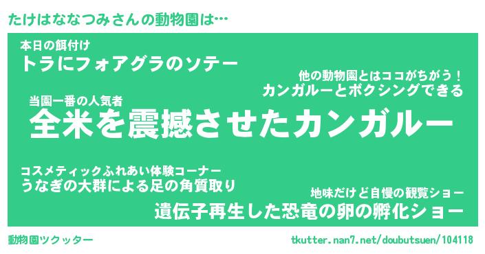 | 2回繰り返すあだ名 | 『たけたけ』『たたけけ』『おやおや』 |